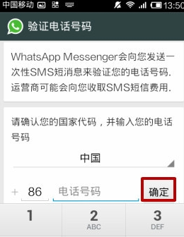 进入验证电话号码页面,在输入框中输入自己的手机号码,点击确定。弹出确认对话框,选择确定。